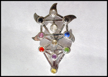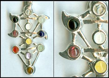 The Healingstar of Peace was inspired by the Kabbalistic model of the universe known as the Tree of Life. Each gem stone symbolizes one of the ten sephirot or divine emanations . The center stone represents the Da’at ,the unifying element that holds the key to all the “chambers”.